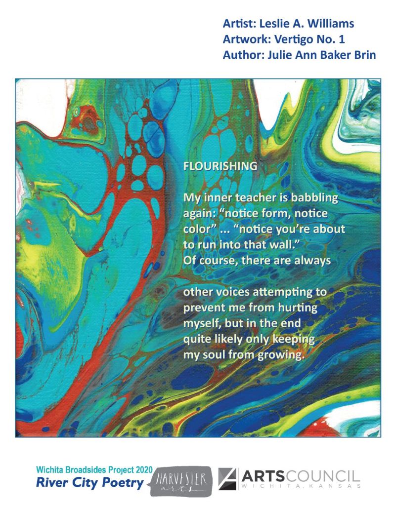 River City Poetry would like to thank collaborators poet Julie Ann Baker Brin and artist Leslie A. Williams for their work on Flourishing for the Wichita Broadside Project.